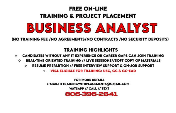 Free Online Business Analyst Training & Placement (No Training Fee OR Security Deposits ) // (No Agreements OR Contracts)